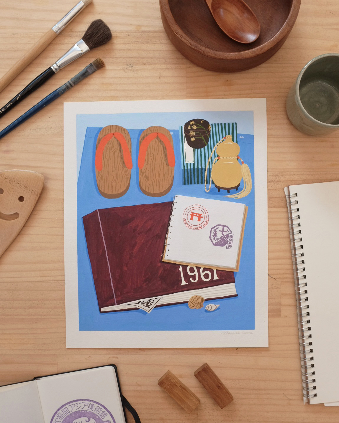 ‘Hakozaki’ ≈ 23,5 x 28,5 cm, gouache on paper, €200, also available as a print in my shop