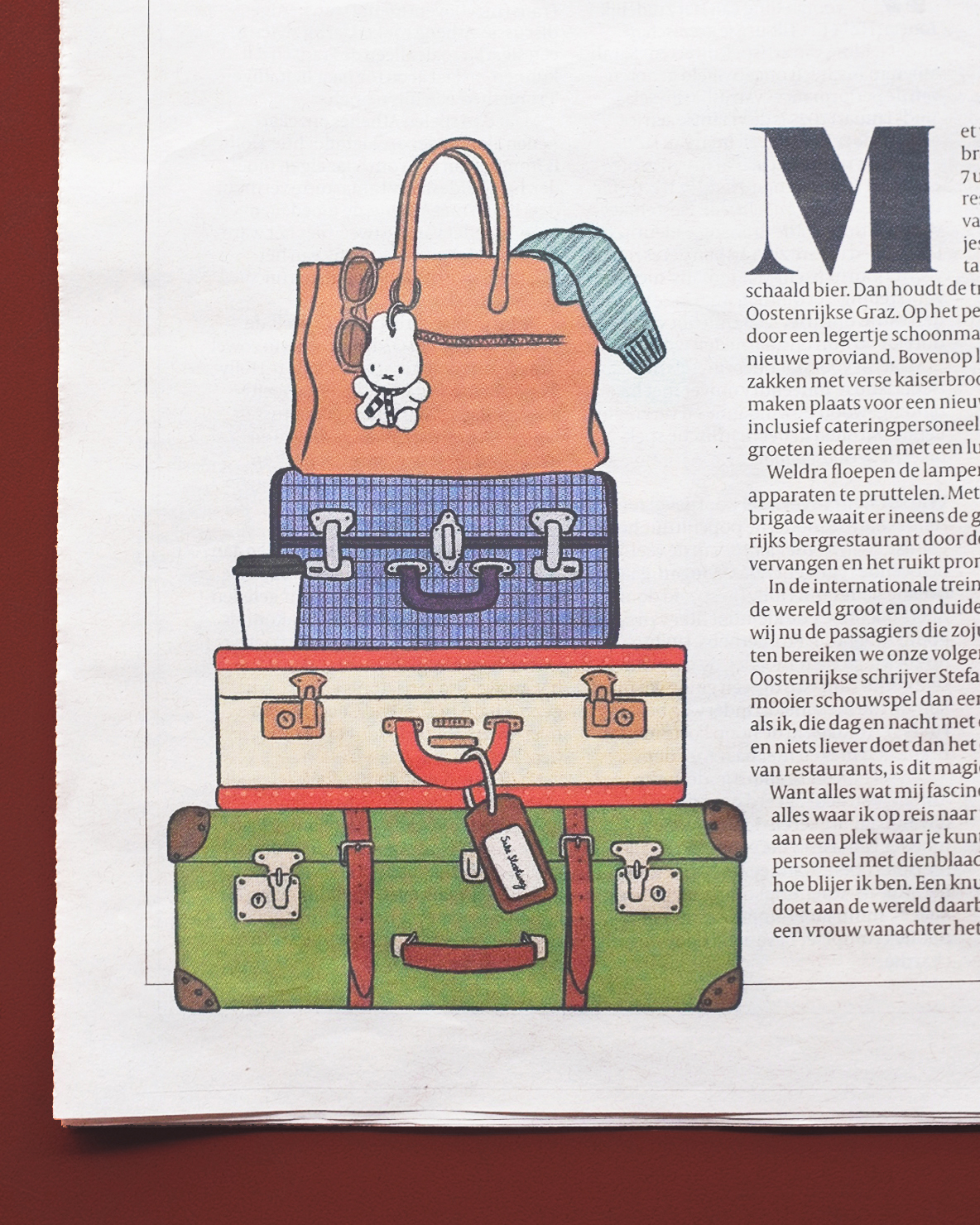 Illustration for de Volkskrant, a Dutch daily morning newspaper. Created to accompany a column by Sake Slootweg: An Ode to the Train Restaurant. A cozy, self-contained universe that momentarily shuts out the world outside.