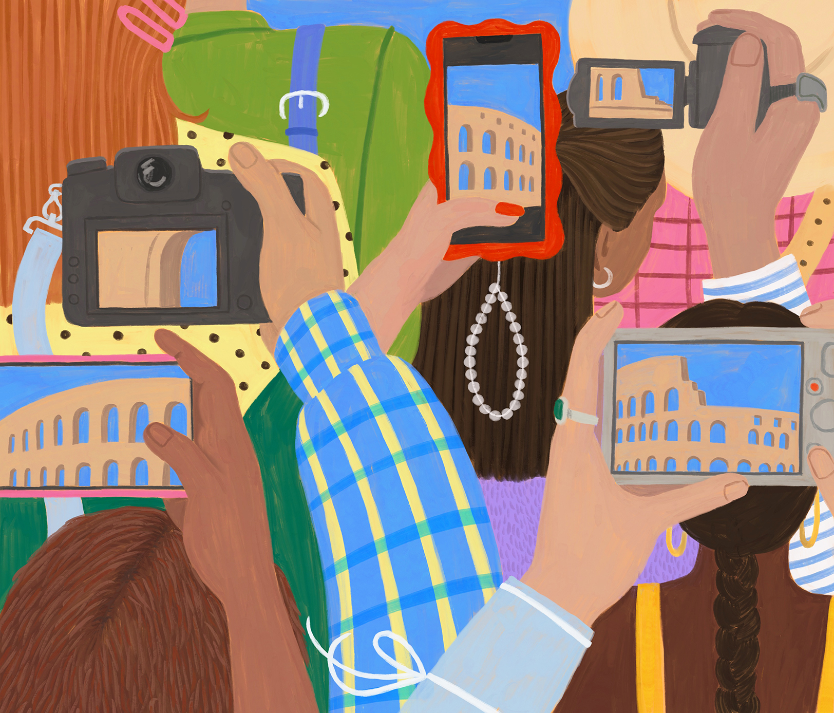 Illustration for a travel special featuring an essay on “overrated city breaks”. After a disappointing month-long city break, consultant Marianne Janssen wonders: what are we looking for in foreign countries?