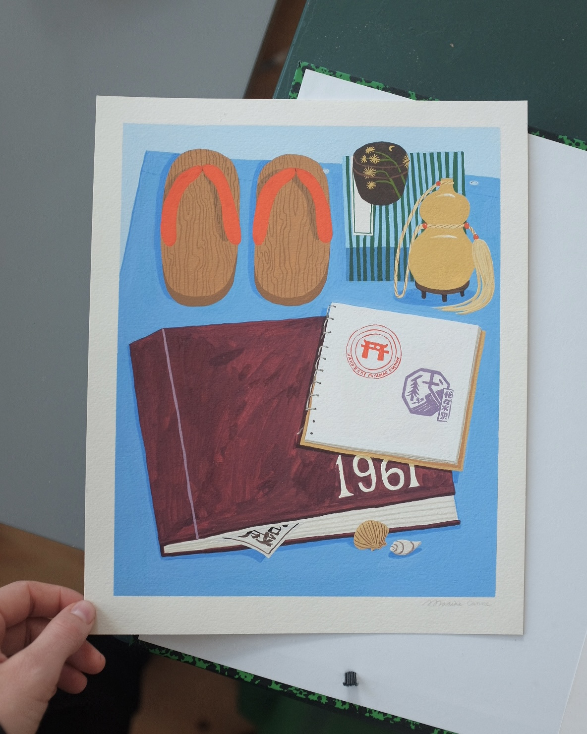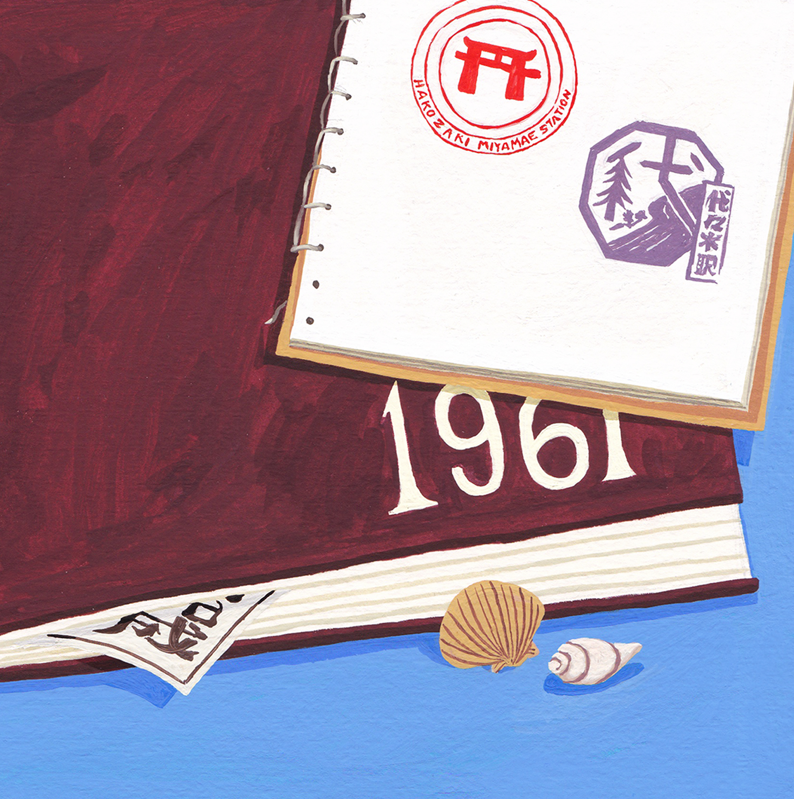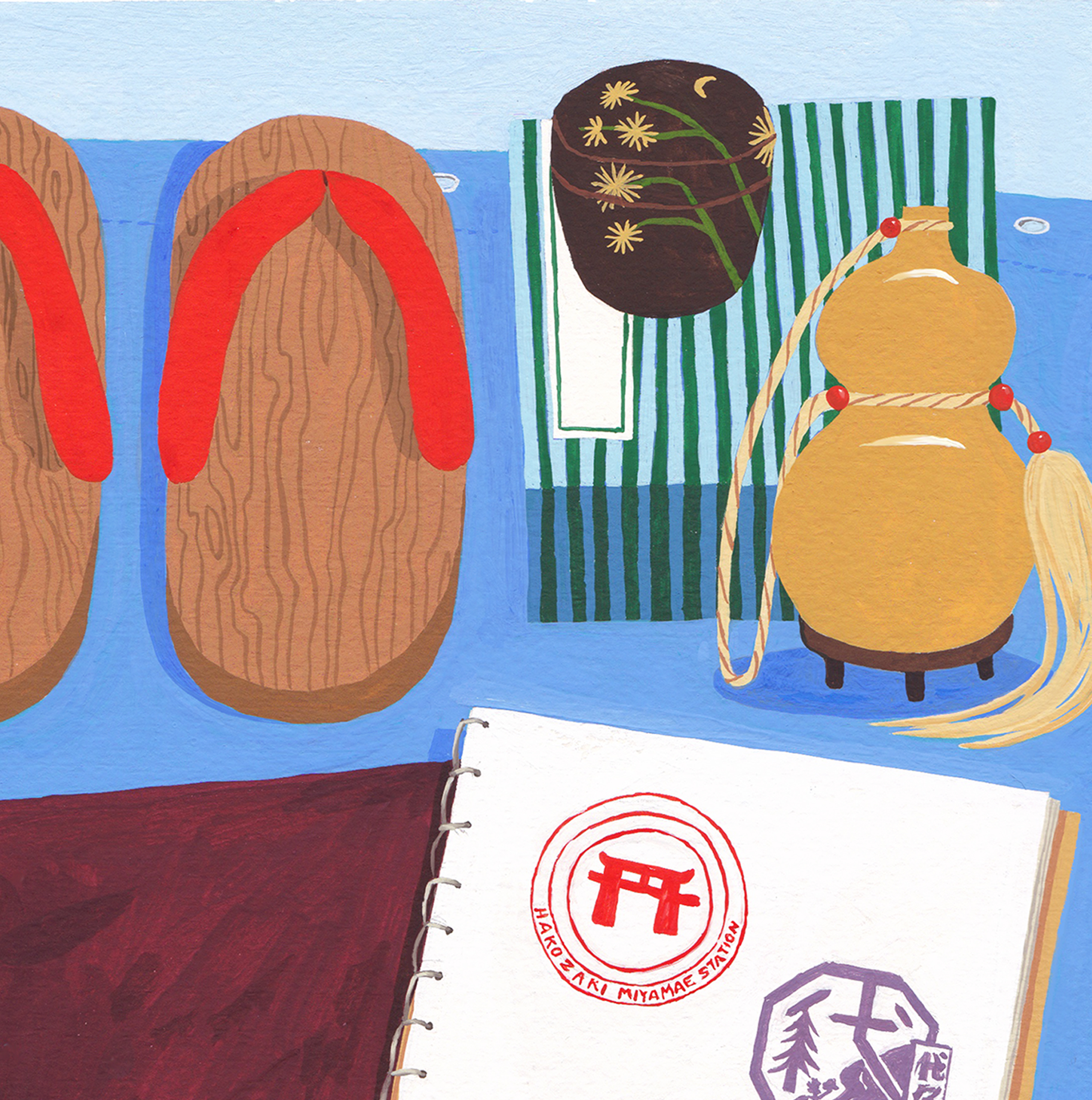 A painted scene that I made inspired by a fleamarket in Fukuoka, Japan